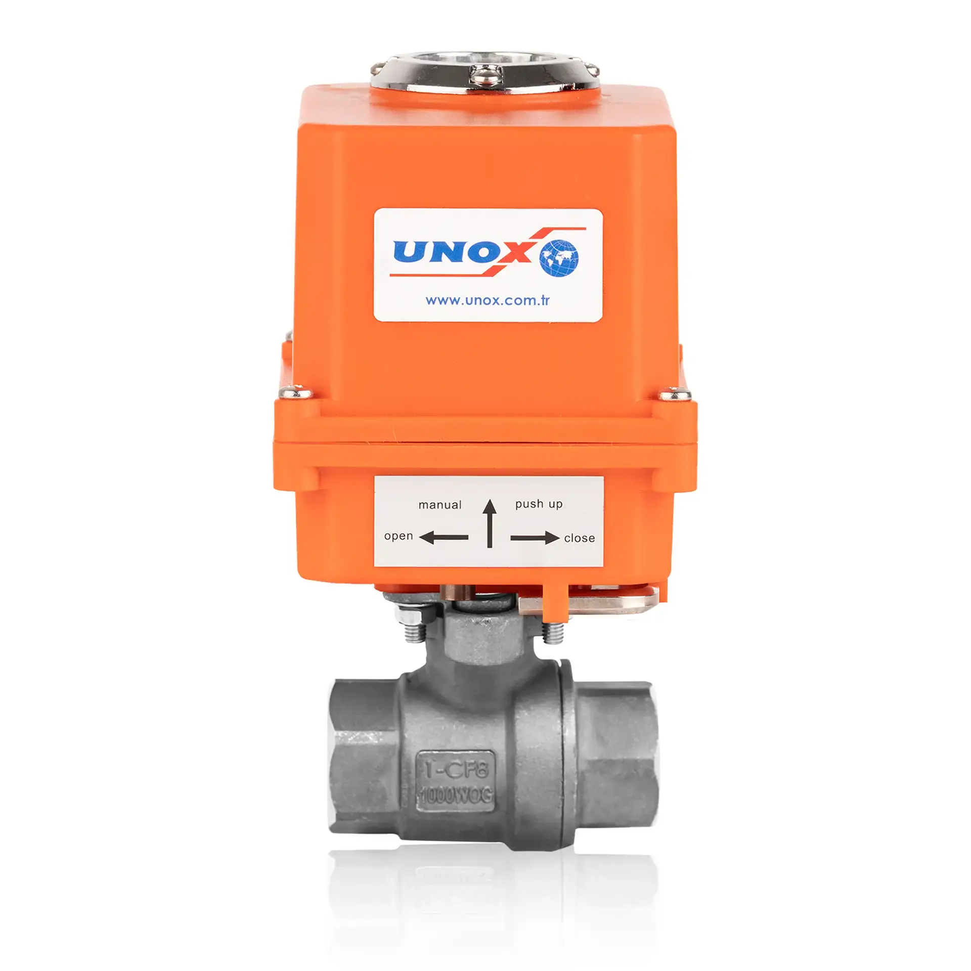 The UNOX Stainless Steel Threaded Ball Valve with Electric Actuator – 2 Piece provides reliable, fully automated shut-off and flow control for a wide range of industrial and sanitary applications. Constructed entirely from AISI 304 or AISI 316 stainless steel, this valve offers outstanding corrosion resistance and mechanical durability, making it ideal for chemical processing, food & beverage, water treatment, marine, and HVAC systems.