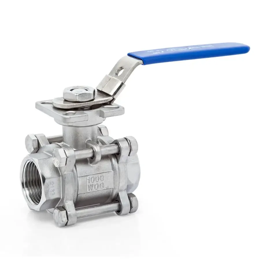 3 Pieces Stainless Steel Ball Valve with Mounting Pad Threaded