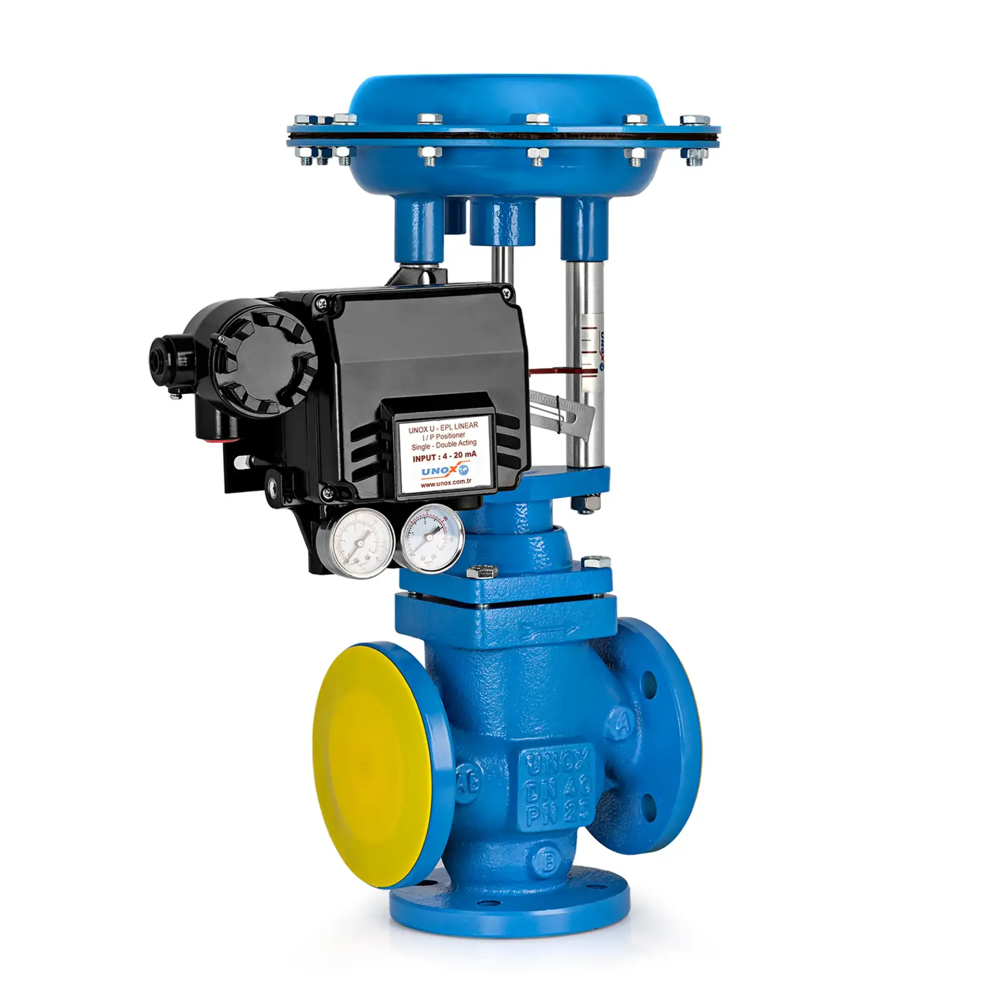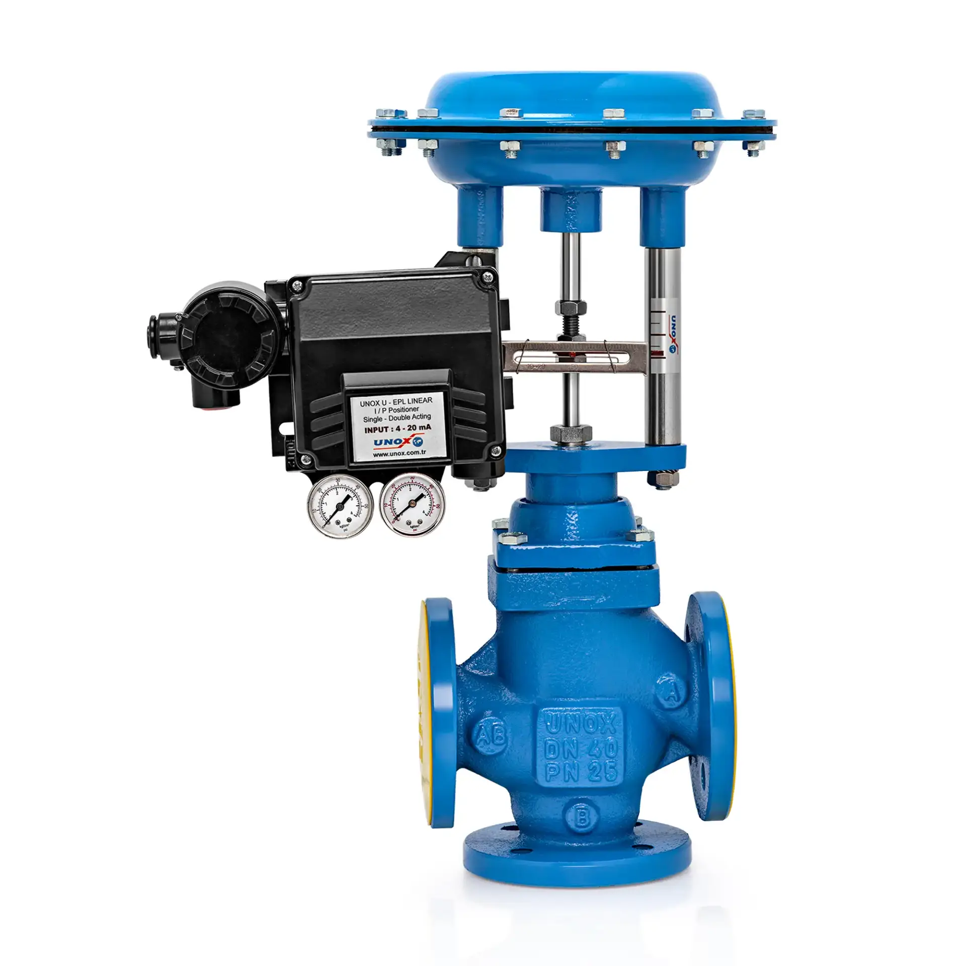The UNOX 3 way pneumatic proportional control valve is engineered for precise distribution and mixing of steam, water, and process fluids. With a robust GGG40.3 ductile iron body and PN25 pressure rating, it ensures reliable operation under demanding industrial conditions.